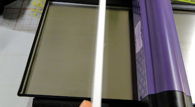 You can see in this photo my Extended Cutting Pads are dirty and I left them that way so you could see I have them in the bottom of the tray. I put the die sandwich in and cranked the handle.....and.....