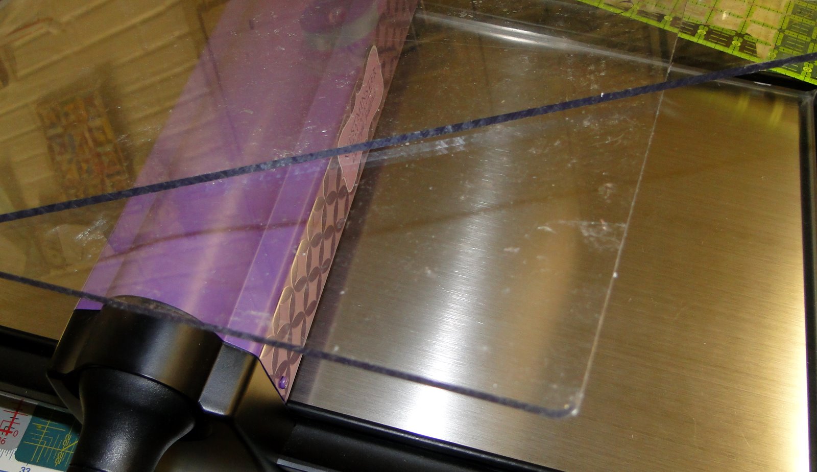 I have a big shot and a Fiskars Fuse that I use to cut leather pieces with custom dies. The Fuse came with grey opaque cutting pads about 4" square. The adapter set of pads are also grey and a pain to use so I'm looking for the right kind of translucent plastic pads. I tried "Acrylic" and the snapping and popping was indeed the acrylic pad breaking to smithereens. lol So now I'm on the hunt for some polypropylene Plastic ones that are the size I need. If I have good results I'll tell everyone what to get. Thank you to the blogger who gave me insight as to how thick the Accuquilt dies are. That makes a world of difference when ordering custom dies. :) Blessings on your head.